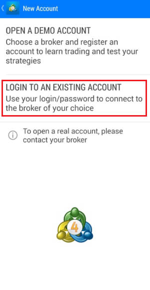 After installing the MetaTrader 4 mobile version, click to open the software to enter the login page. If you have already opened a real account, please select "Login to an existing account".