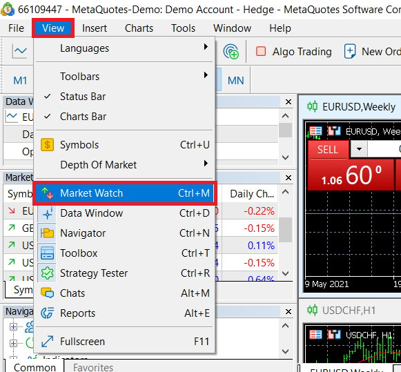 If the market quote window is not displayed, you need to click [View] on the menu bar first, and then select [Market Quote]