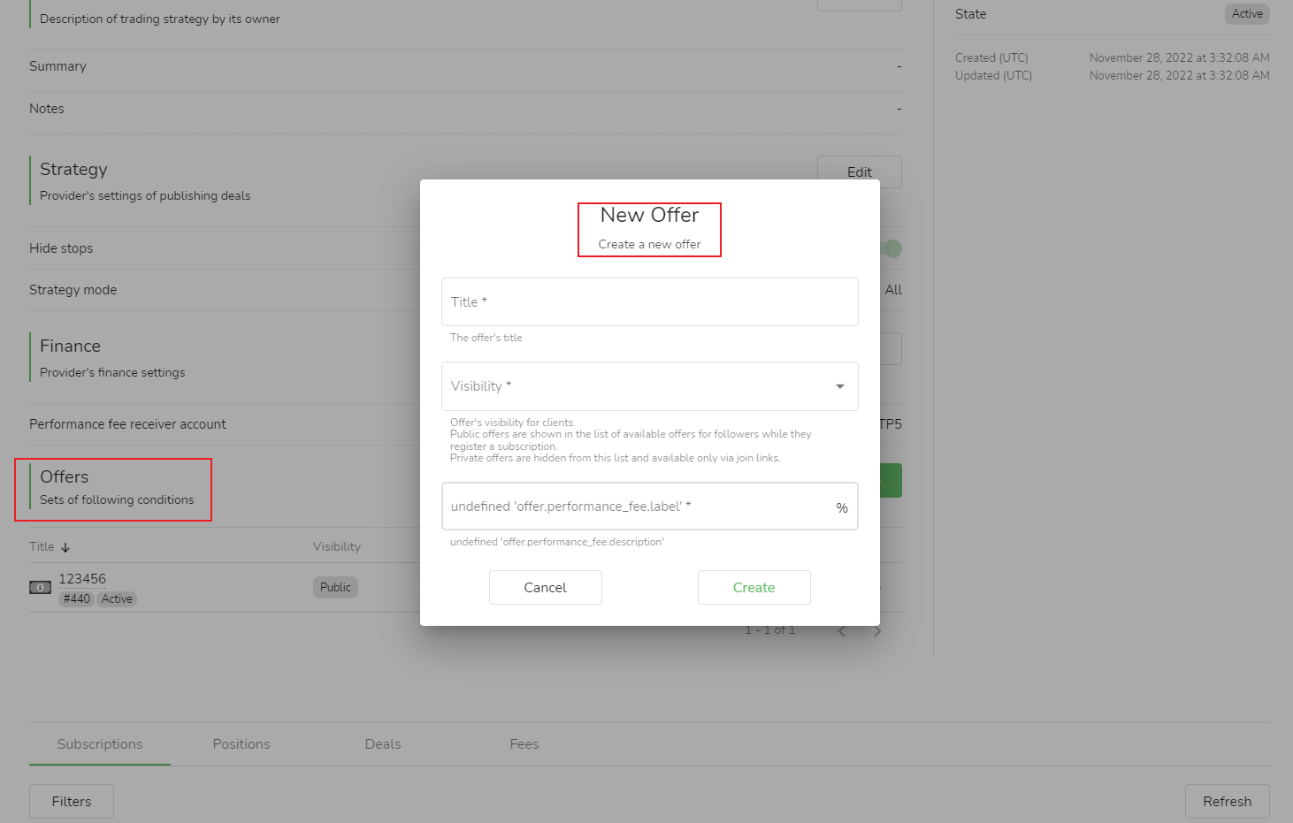 Después de completar la creación de una nueva fuente de señal, puede establecer el [Título], [Estrategia], [Cuenta receptora de la tarifa de rendimiento] y crear una [Condición de copia].