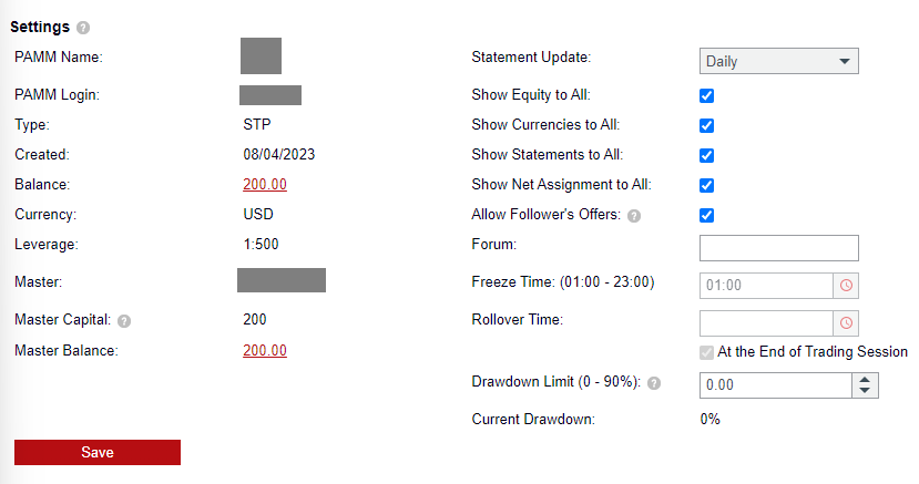 a. Inicie sesión y cree una nueva cuenta PAMM. Para obtener detalles sobre la creación de una cuenta, consulte "¿Cómo abrir una cuenta PAMM con Doo PAMM?".
