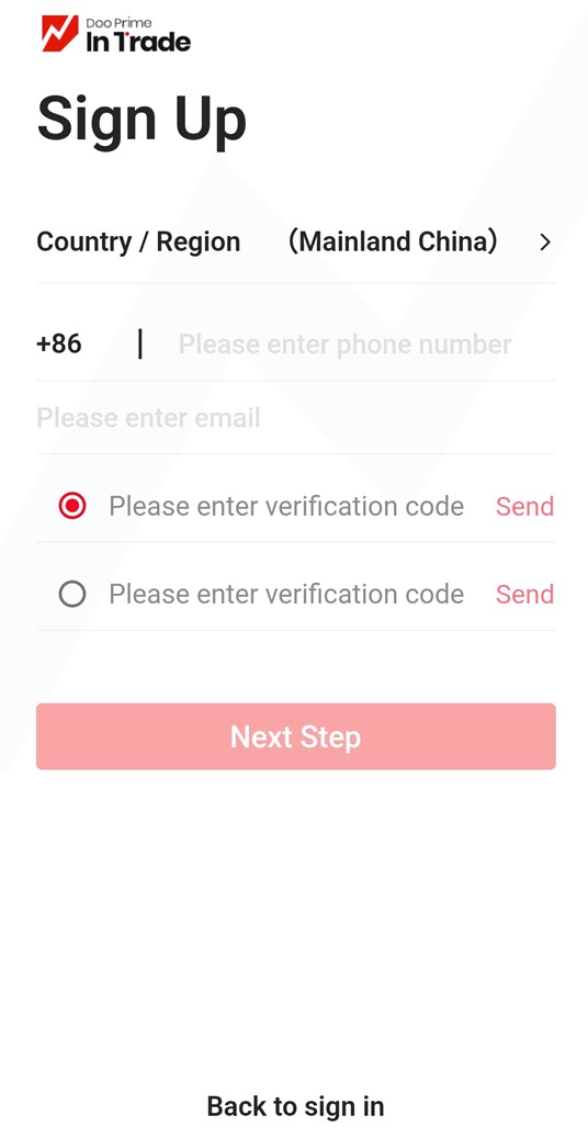 Si no tiene una cuenta del Centro de usuarios de D Prime, haga clic para abrir la aplicación – D Prime InTrade y haga clic en "Registrarse" en la parte inferior de la interfaz.