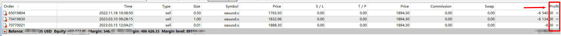 Método de visualización: seleccione "Operar" en la barra de menú inferior de MT4 y verifique el orden de posición. Si se muestra x al final del pedido, significa que actualmente está utilizando la contraseña de inversión (contraseña de observación) para iniciar sesión en el cuenta
