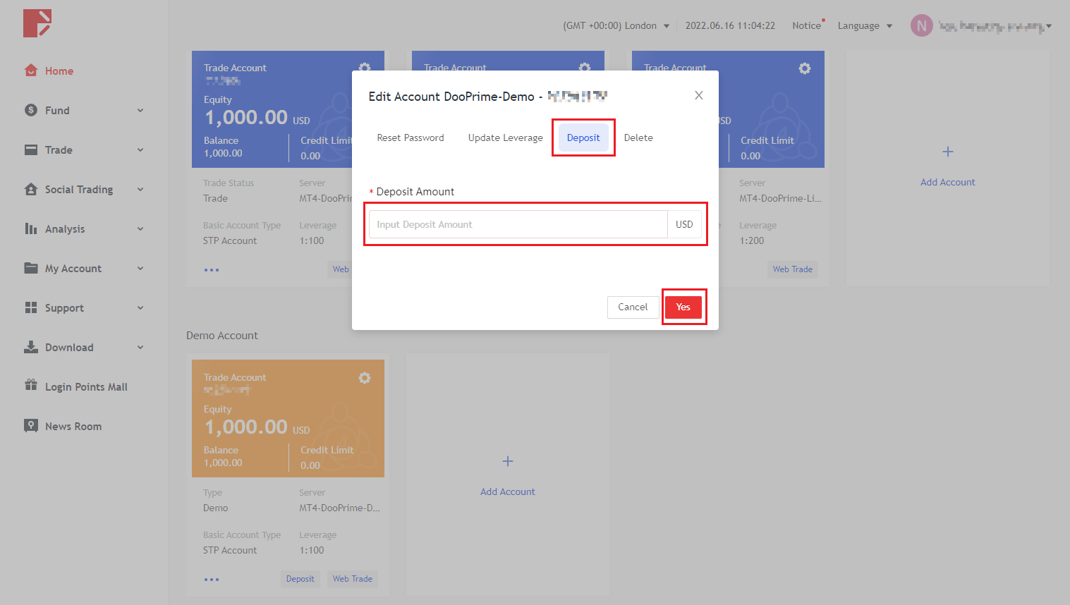 데모계좌 입금 방법?