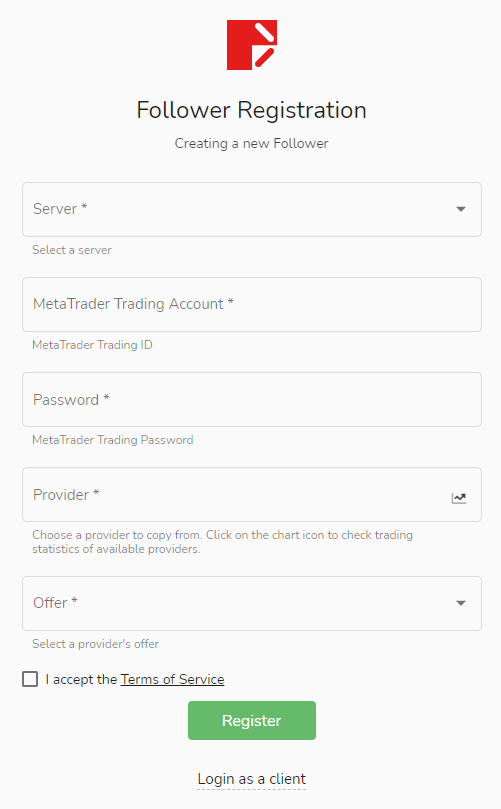 팔로워는 다음 단계를 통해 활성 계정을 등록하여 신호 소스를 팔로우할 수 있습니다.