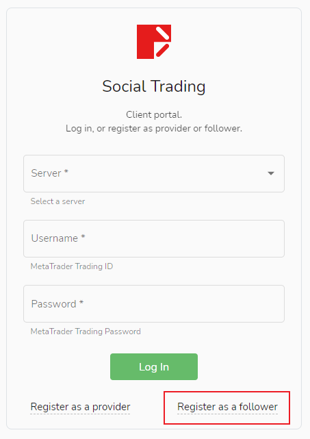 - servidor:Selecione um servidor (observe que CopyTrading atualmente suporta contas de servidor MT4-Live1, MT4-Live3, MT4-Live4, MT4-Live5 e MT4-Live6)