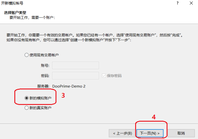 2.2 选择「新的模拟账户」,然后点击「下一页」。