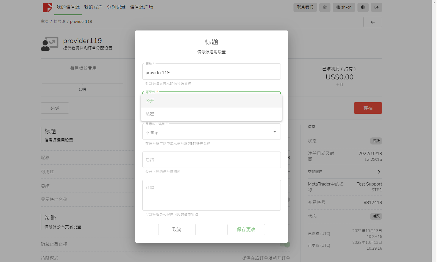 1.信号源可以通过在「我的信号源」栏目下,点击「标题」右侧的「编辑」按钮,在弹窗第二行「可见性」栏目里选择「私密」。