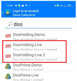 在选择交易商的页面输入「DooPrime-live」 或 「DooPrime-live2」,选择实盘服务器「DooPrime-Live 2」。(Doo Prime 是使用正版 MetaTrader 4 软件的正规经纪商,如果是使用盗版软件的虚假经纪商,此处将搜索不到服务器。)