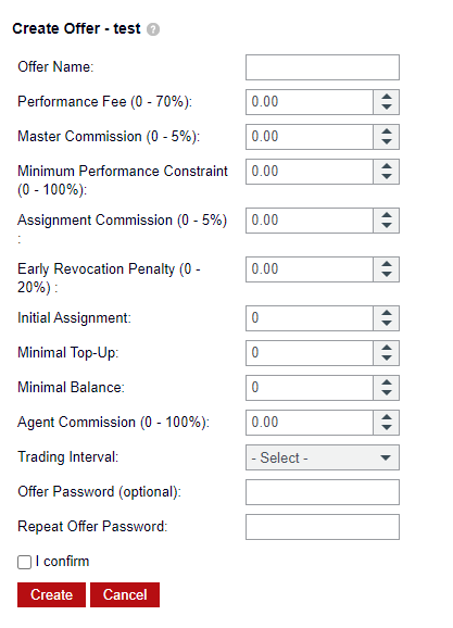 注意!建立報價後,只能編輯「密碼」 和「代理佣金參數」。